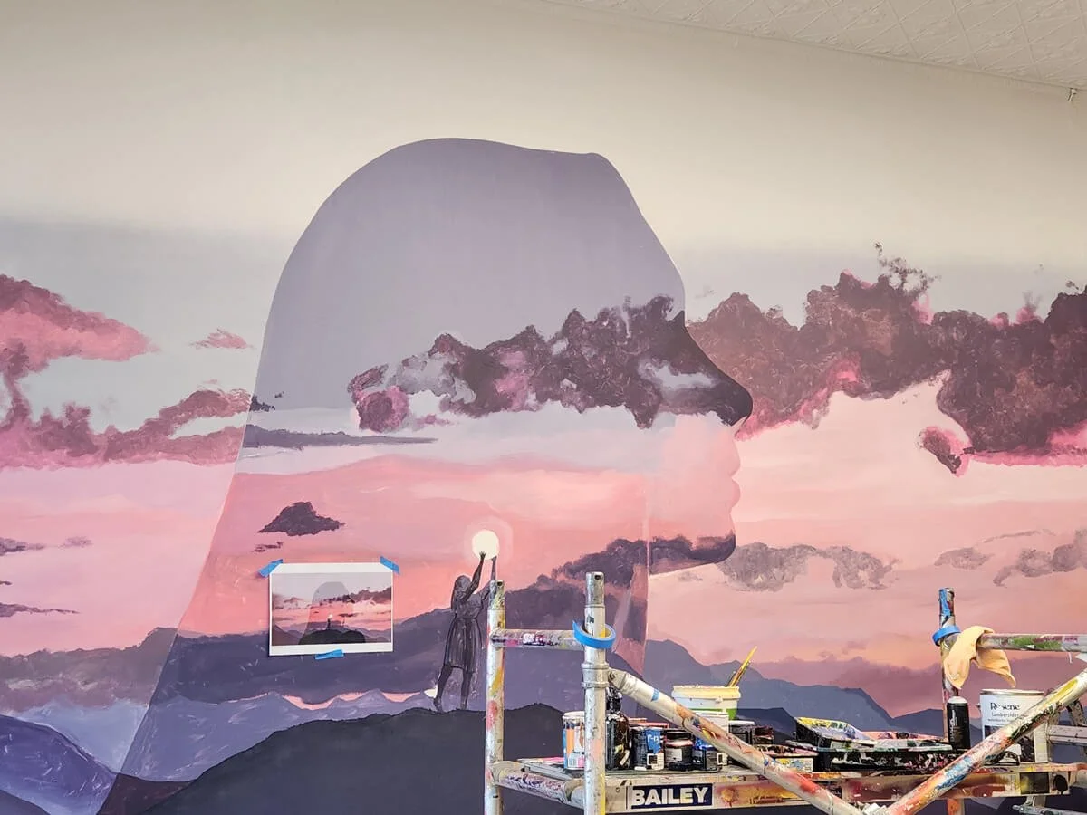 “A vision of self mastery and possibility, this mural design reflects the power in shaping your own reality. It speaks to the courage of women who step into their strength, lift their dreams into the light, and create the world they wish to inhabit.”